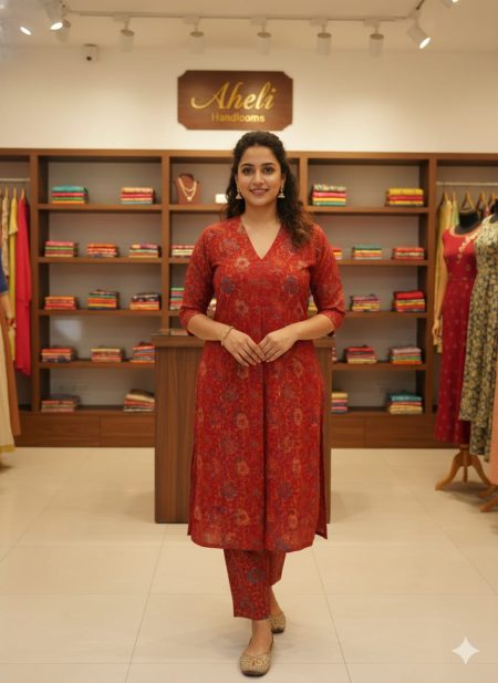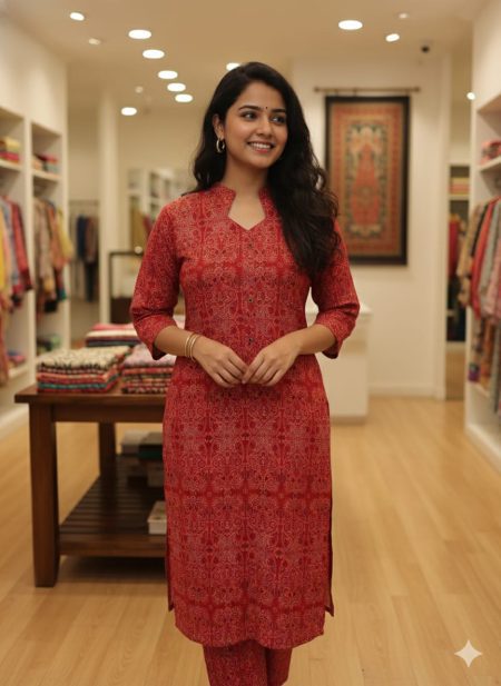 Popular among our customers—your favorite Ajark cotton Kurt set with soft cotton lining!👗 Pattern: Aline pattern with staright cut kurti and Pant