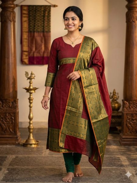 KANCHI COTTON KURTI WITH DUPPATTA-KC33