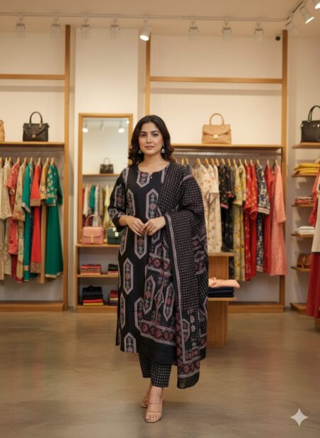 Premium Cambric Cotton Vatican Silk Kurti Set