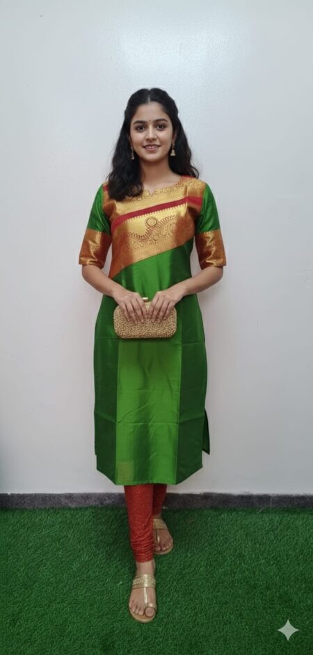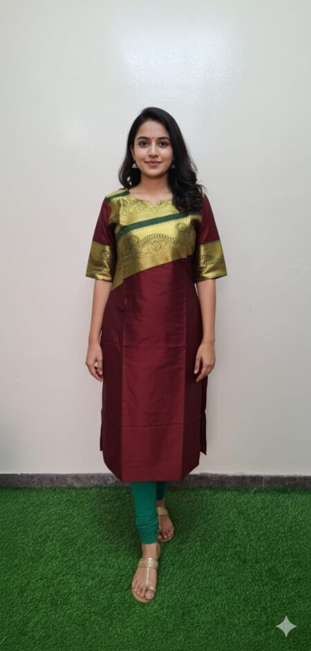Step into the festive season with grace in our RAW SILK Kurti with Banarasi Brocade Border – a timeless blend of tradition & elegance!