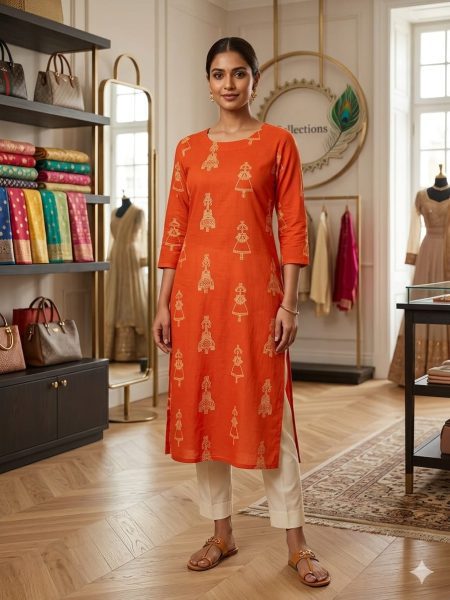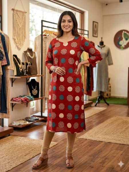 Crafted from breathable cotton fabric, this straight-cut kurti offers a perfect blend of comfort and everyday elegance. Ideal for casual wear, office looks, or light outings.
