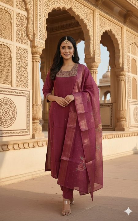 🌸 Fabric: Premium Vatican Silk (Kurti & Bottom) with soft lining