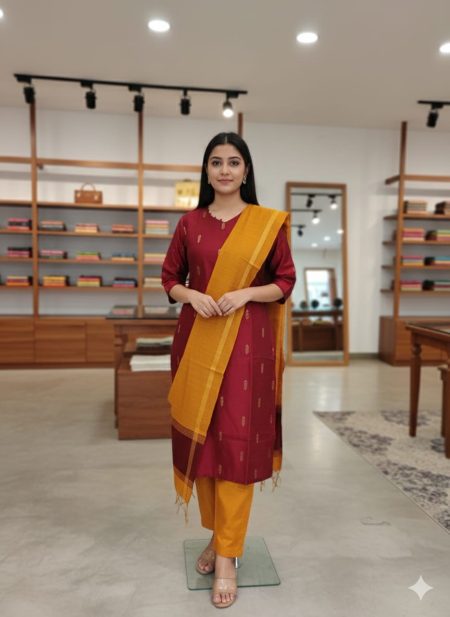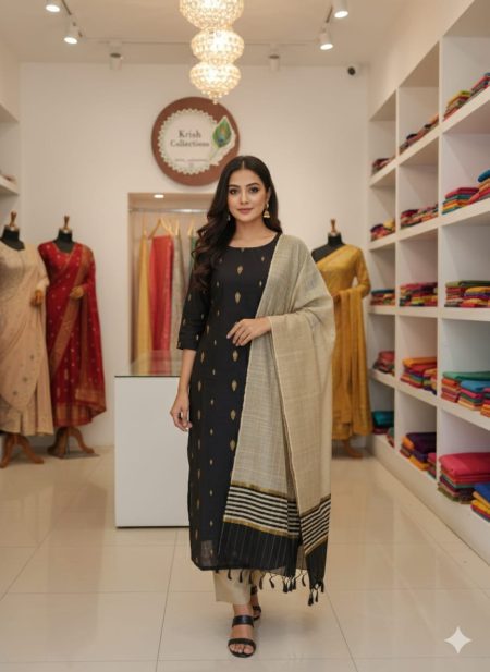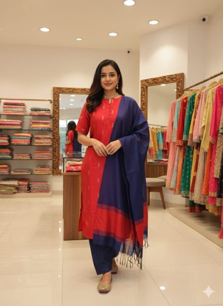πŸ’Ž Kurti Fabric – Premium Dupion Raw Silk with soft lining for ultimate comfort & shine.