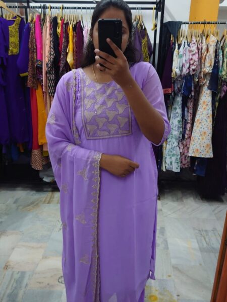 Kurti: Georgette fabric with heavy embroidery, Crepe lining, 46 inch length