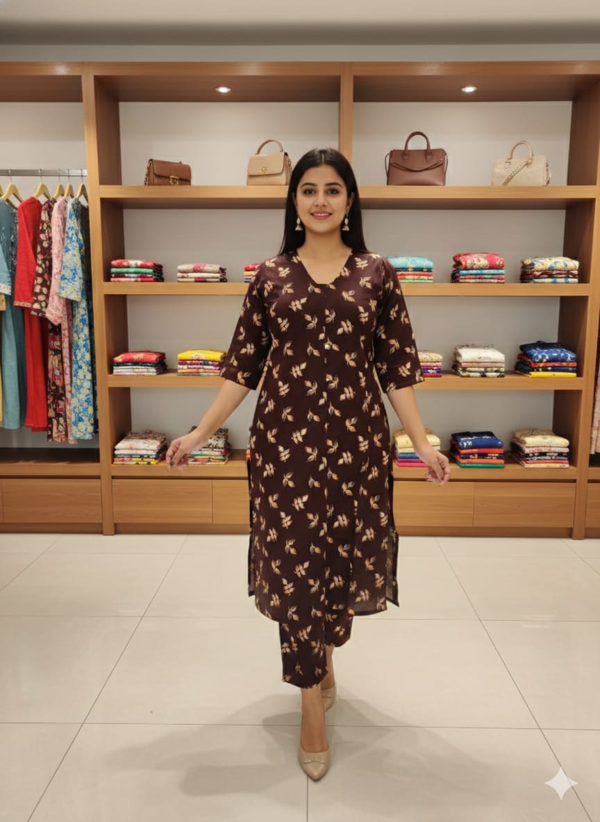 Popular among our customers—your favorite Ajark cotton Kurt set with soft cotton lining!👗 Pattern: Aline pattern with staright cut kurti and Pant
