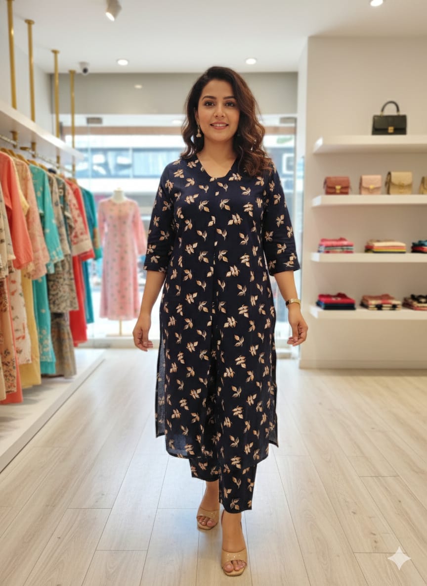 Popular among our customers—your favorite Ajark cotton Kurt set with soft cotton lining!👗 Pattern: Aline pattern with staright cut kurti and Pant