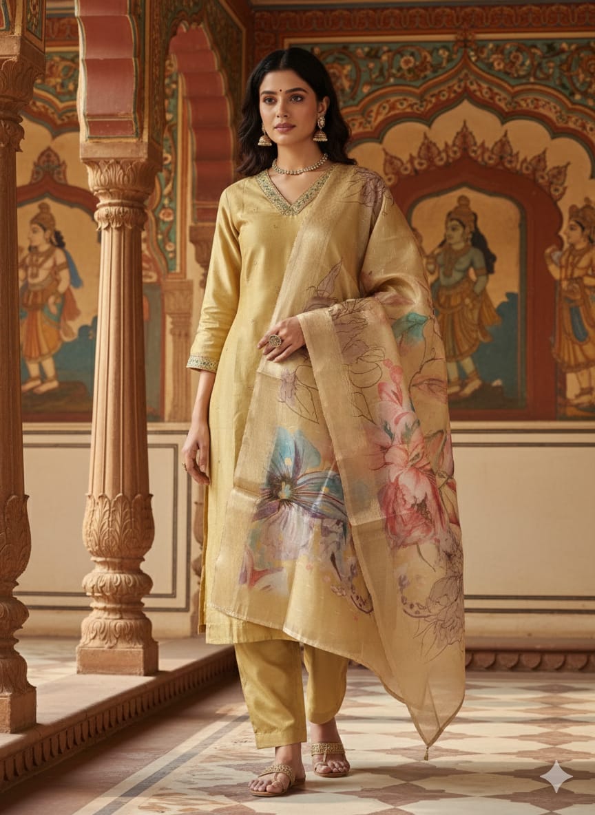 🌸 Fabric: Premium Vatican Silk (Kurti & Bottom) with soft lining