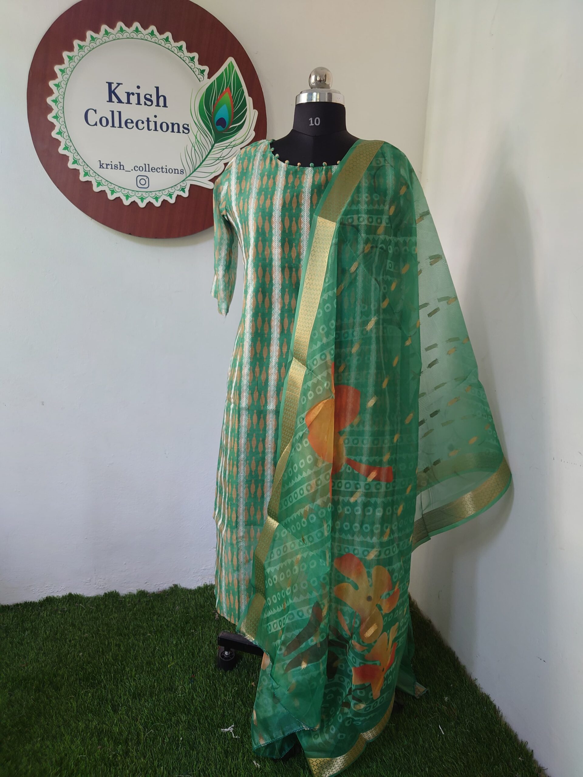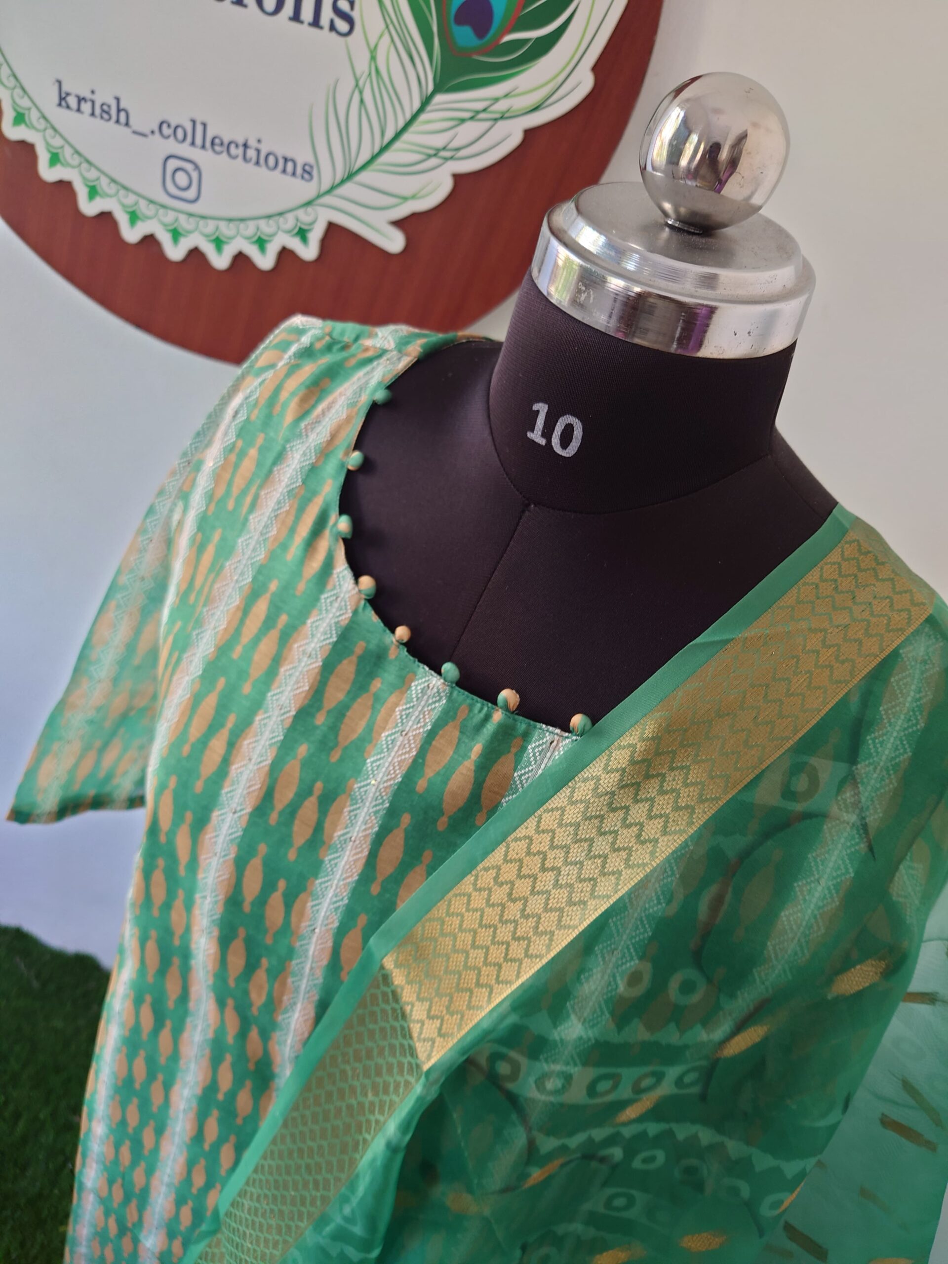 Material: Boutique Style Chanderi Cotton and heavy organza with jacquard butta weaving