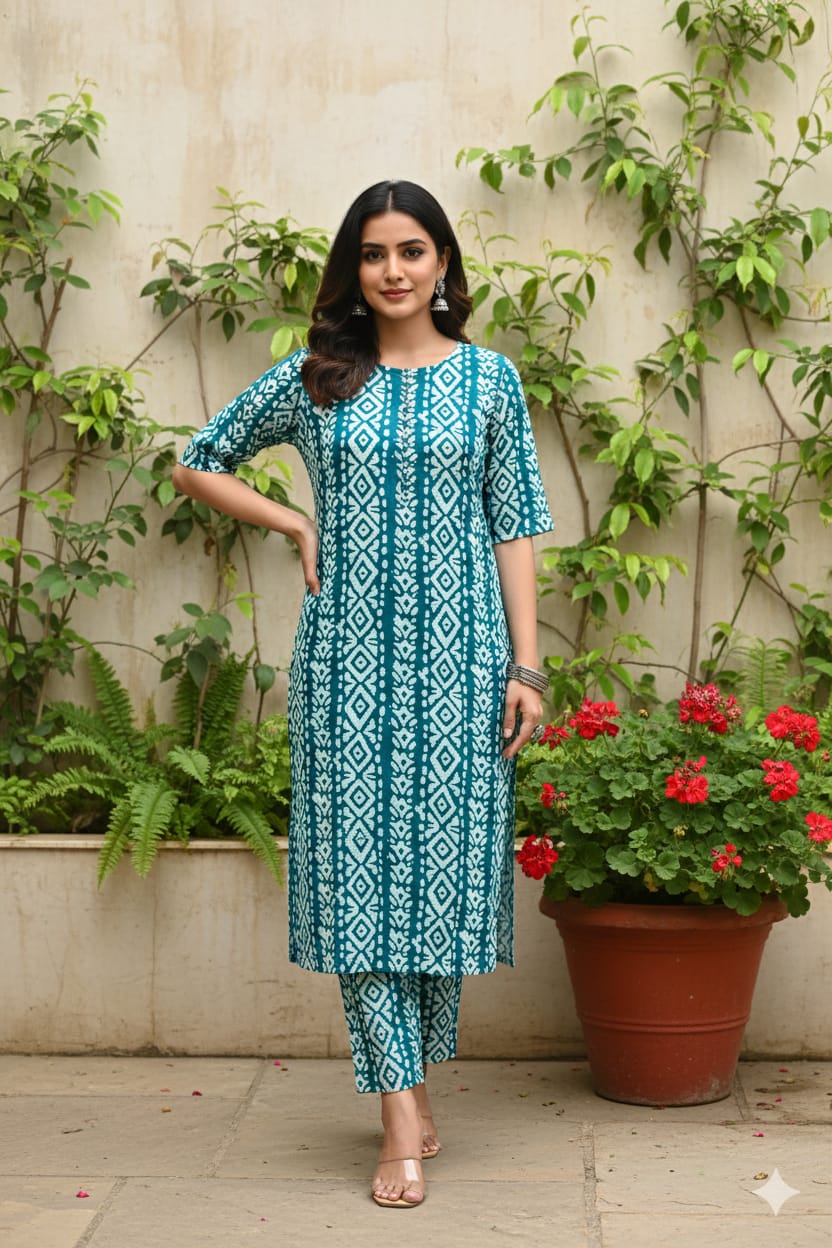 🌸 Premium Quality Cambric Cotton Kurti With Pants 🌸
