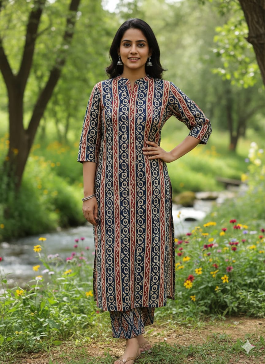 🌸 Premium Quality Cambric Cotton Kurti With Pants 🌸