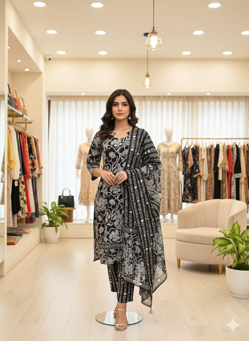 Premium Quality Cotton Kurti with pant and Dupatta