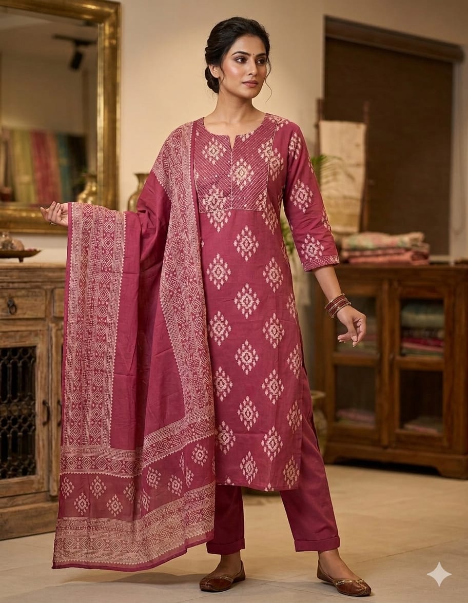 Straight Cut Kurta with Bottom and Dupatta