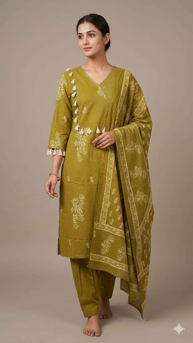 - Set Includes: Kurti, bottom, and dupatta