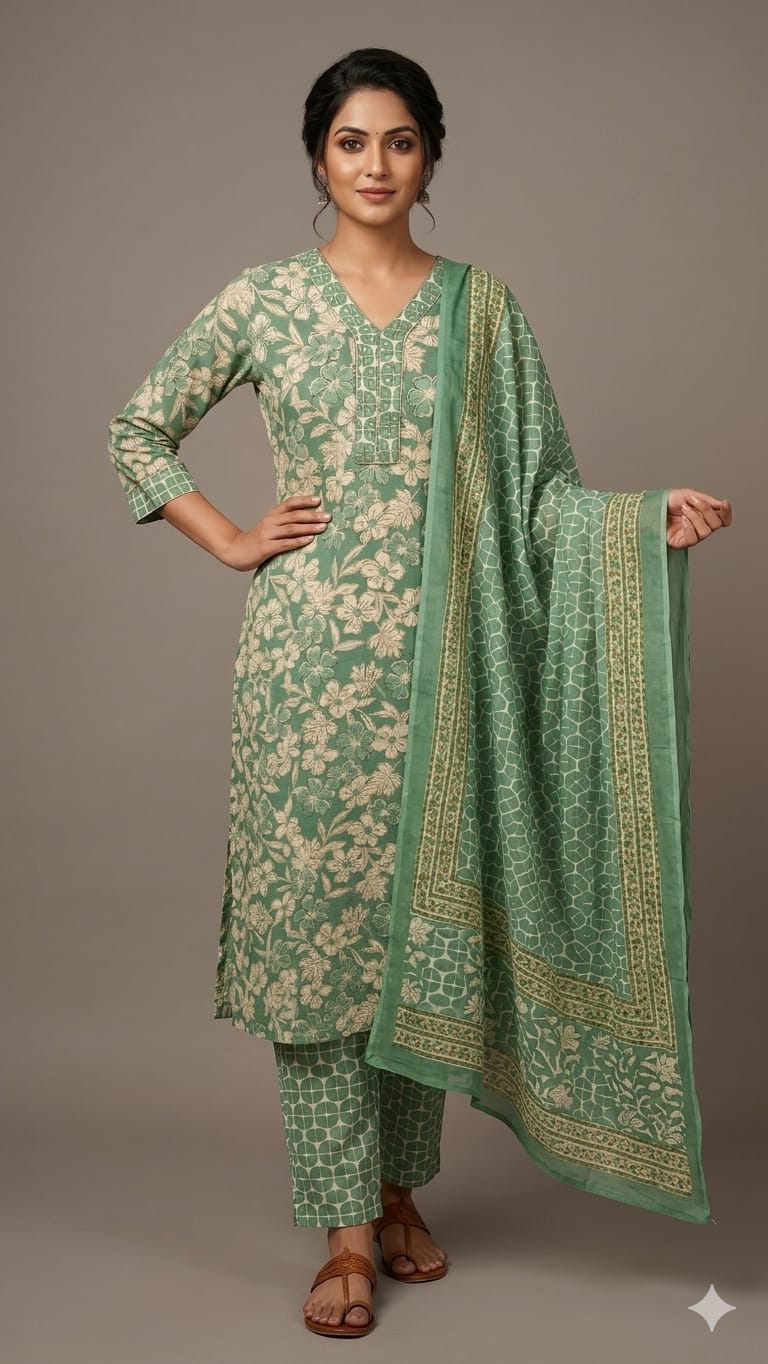 - Design: Kalamkari Cotton Salwar Set with Linning