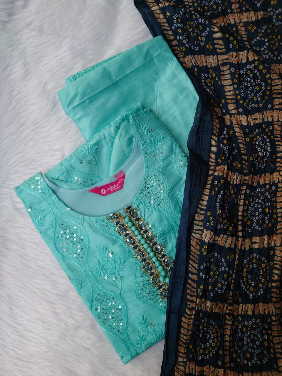 ✨ Pattern: Classic 3-piece Salwar Set (Kurti + Pant + Dupatta)