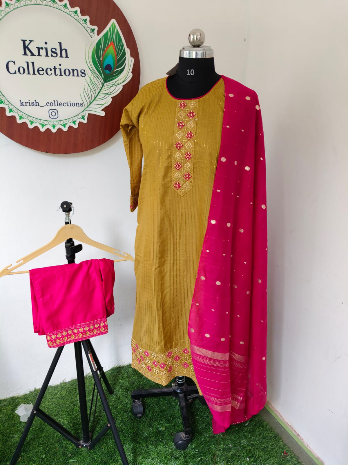 ✨ Pattern: Classic 3-piece Salwar Set (Kurti + Pant + Dupatta)