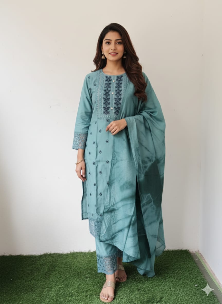 ✨ Pattern: Classic 3-piece Salwar Set (Kurti + Pant + Dupatta)