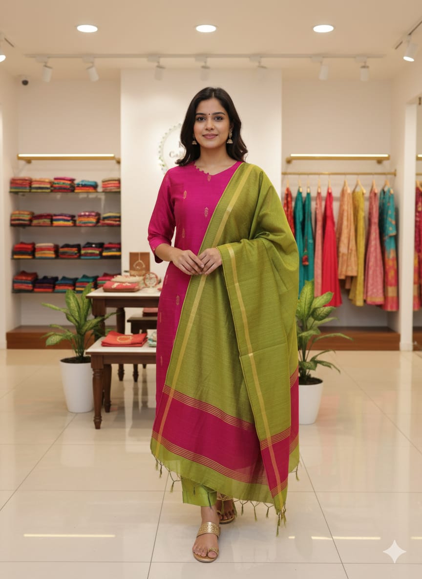 πŸ’Ž Kurti Fabric – Premium Dupion Raw Silk with soft lining for ultimate comfort & shine.