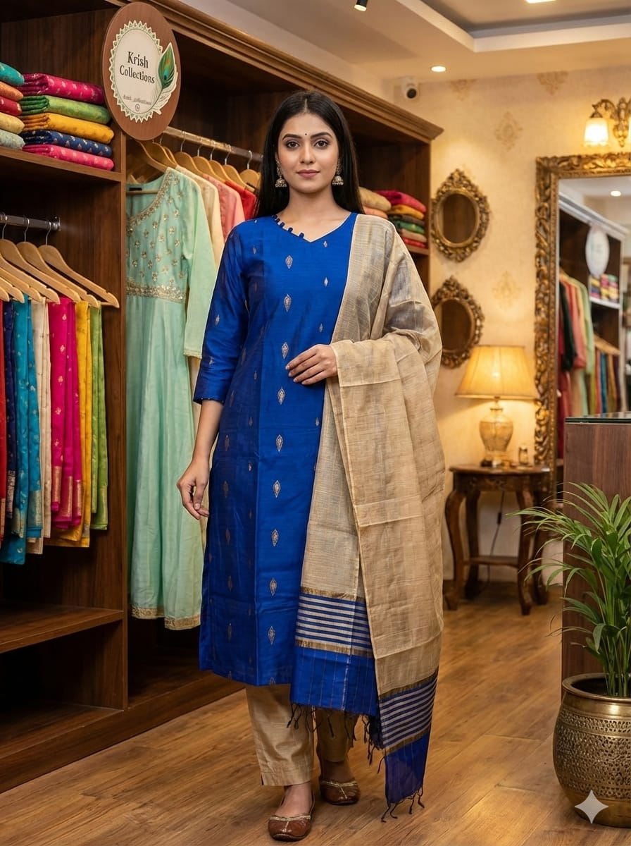 πŸ’Ž Kurti Fabric – Premium Dupion Raw Silk with soft lining for ultimate comfort & shine.