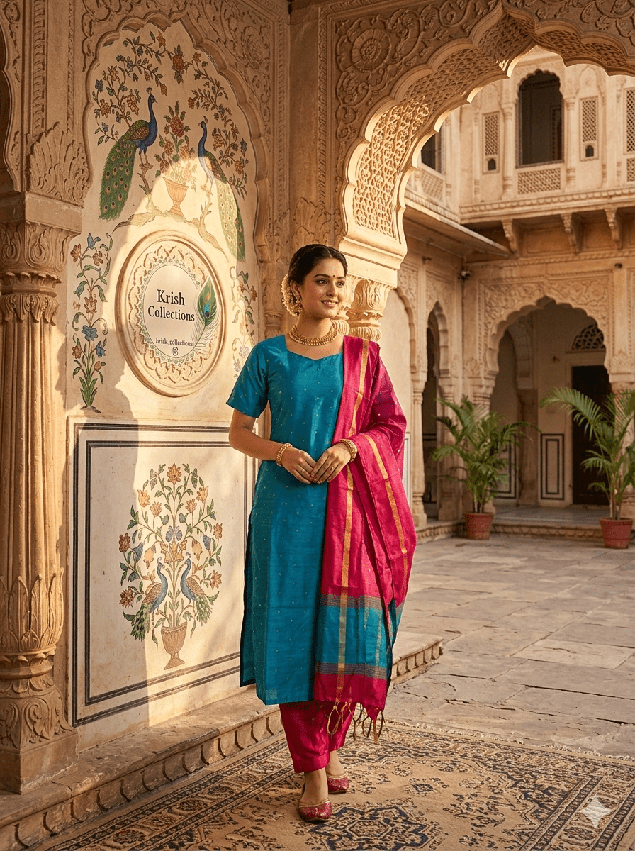 💎 Kurti Fabric – Premium Dupion Raw Silk with soft lining for ultimate comfort & shine.