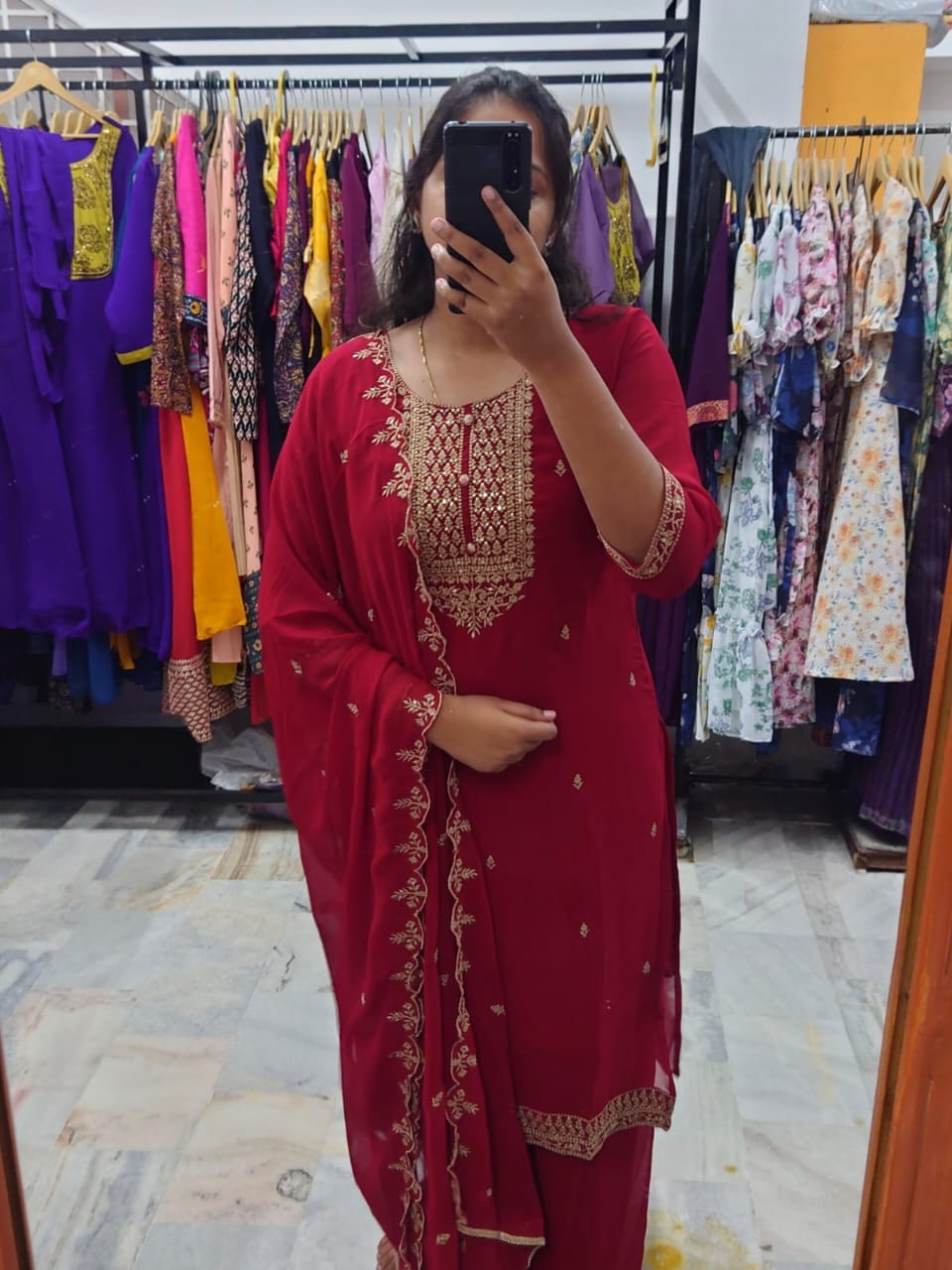 GEOGRATTE SALWAR SET-SS178(MAROON)