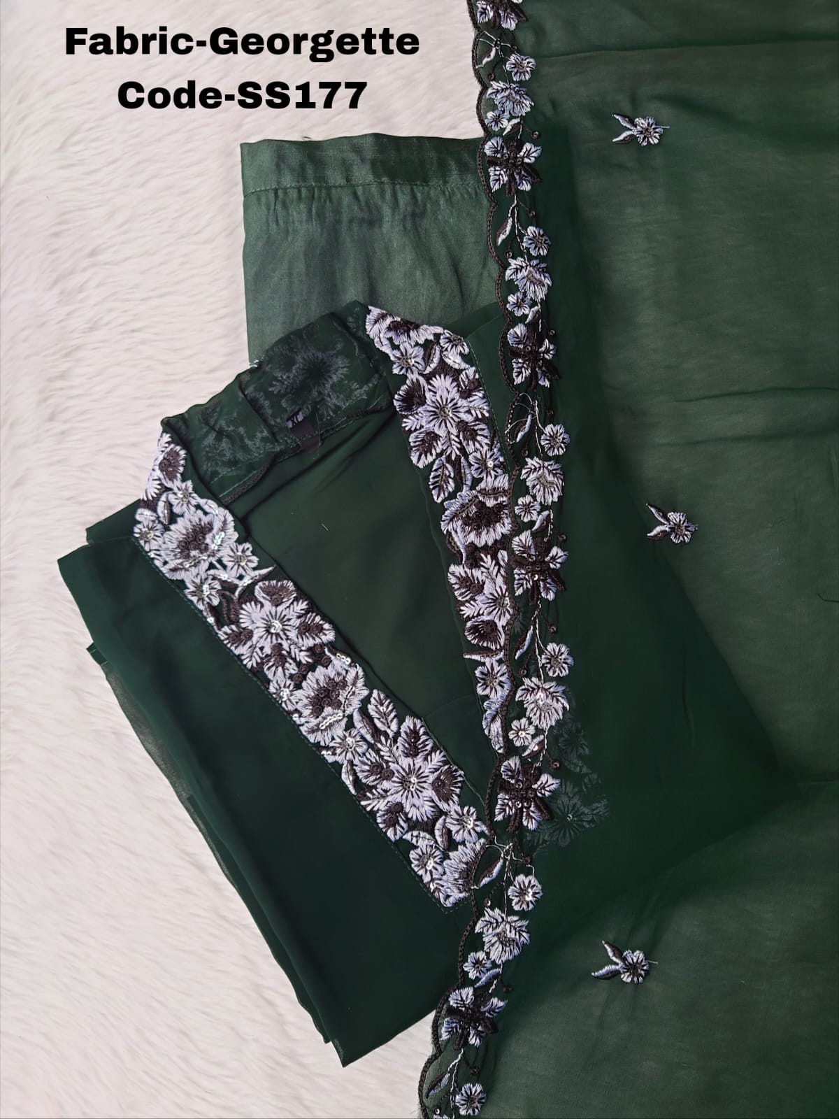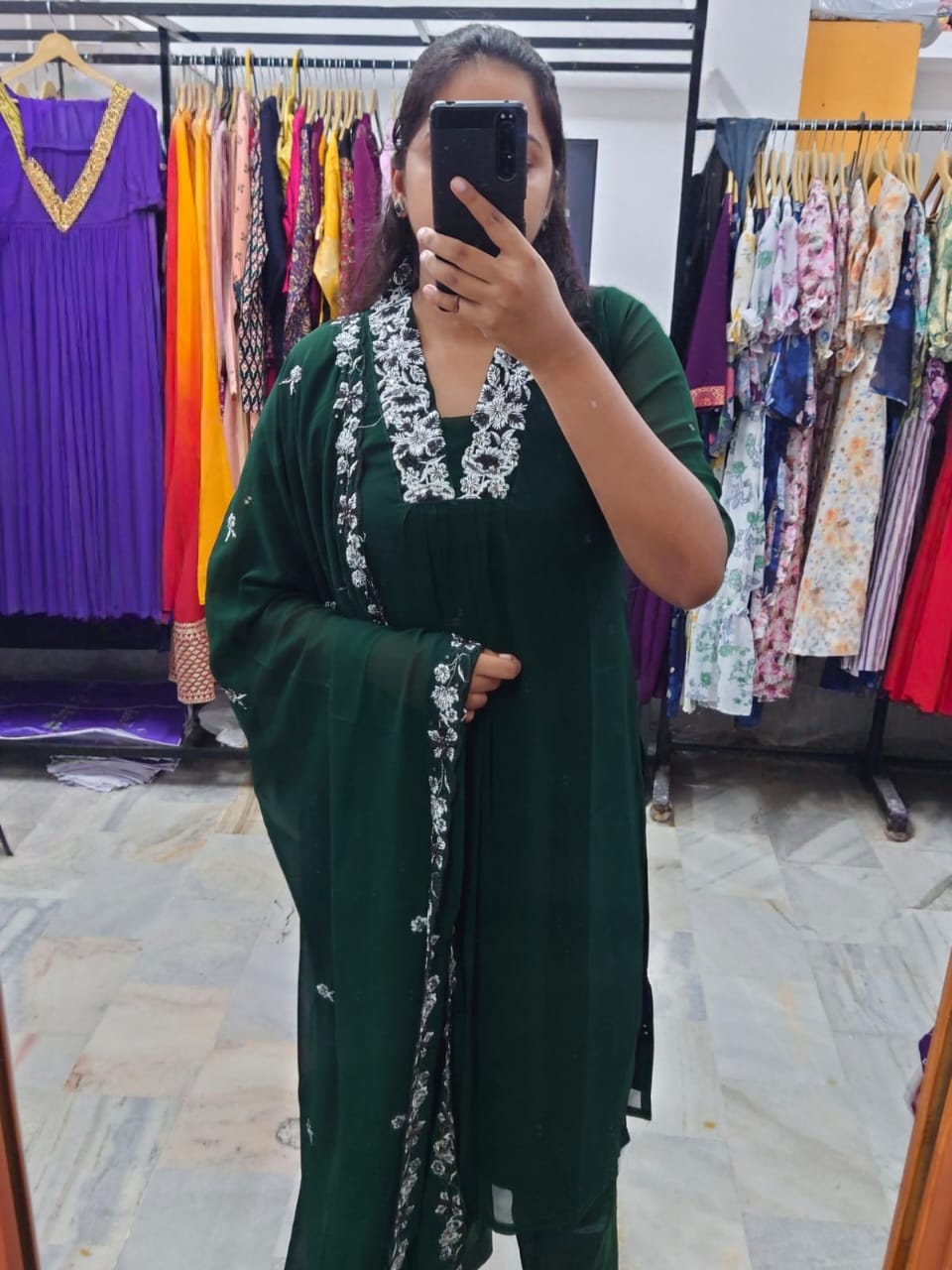 Kurti: Georgette fabric with heavy embroidery, Crepe lining, 46 inch length