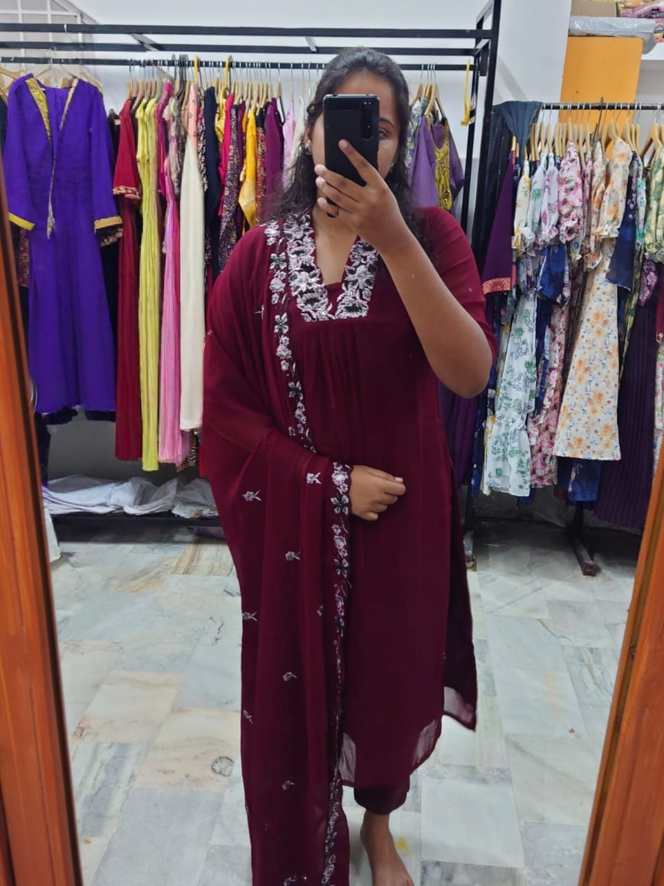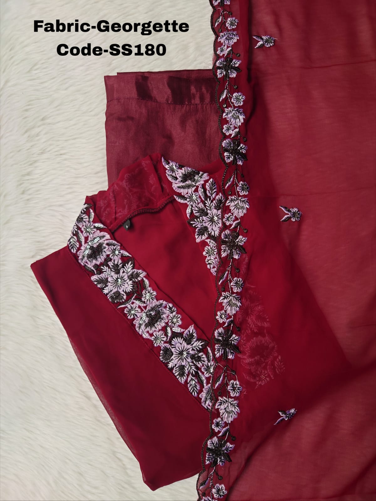Kurti: Georgette fabric with heavy embroidery, Crepe lining, 46 inch length