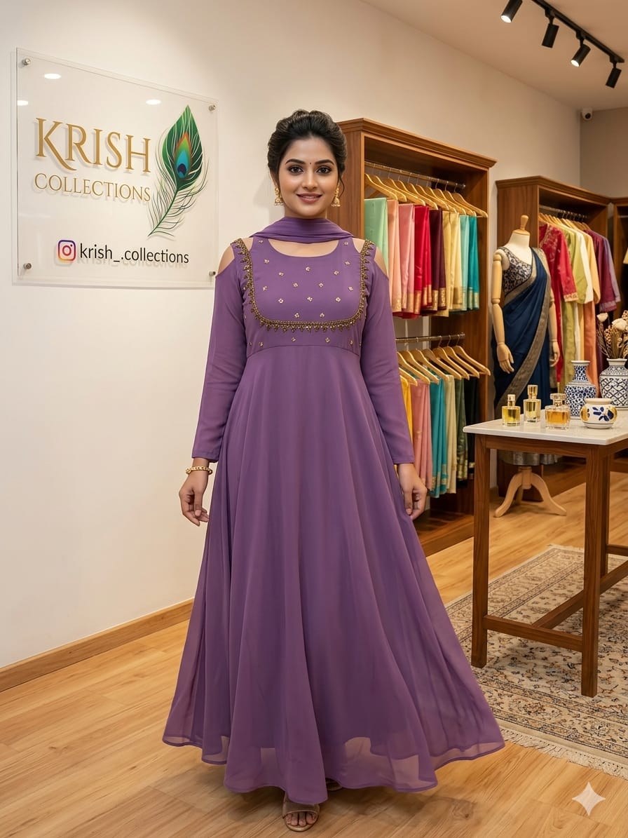 Gracefully designed Georgette salwar set that offers a flowy, elegant look — perfect for festive wear, outings, and special occasions. Lightweight fabric with comfortable lining ensures style with ease.