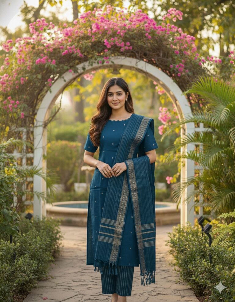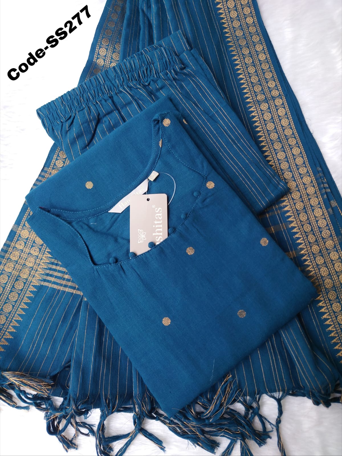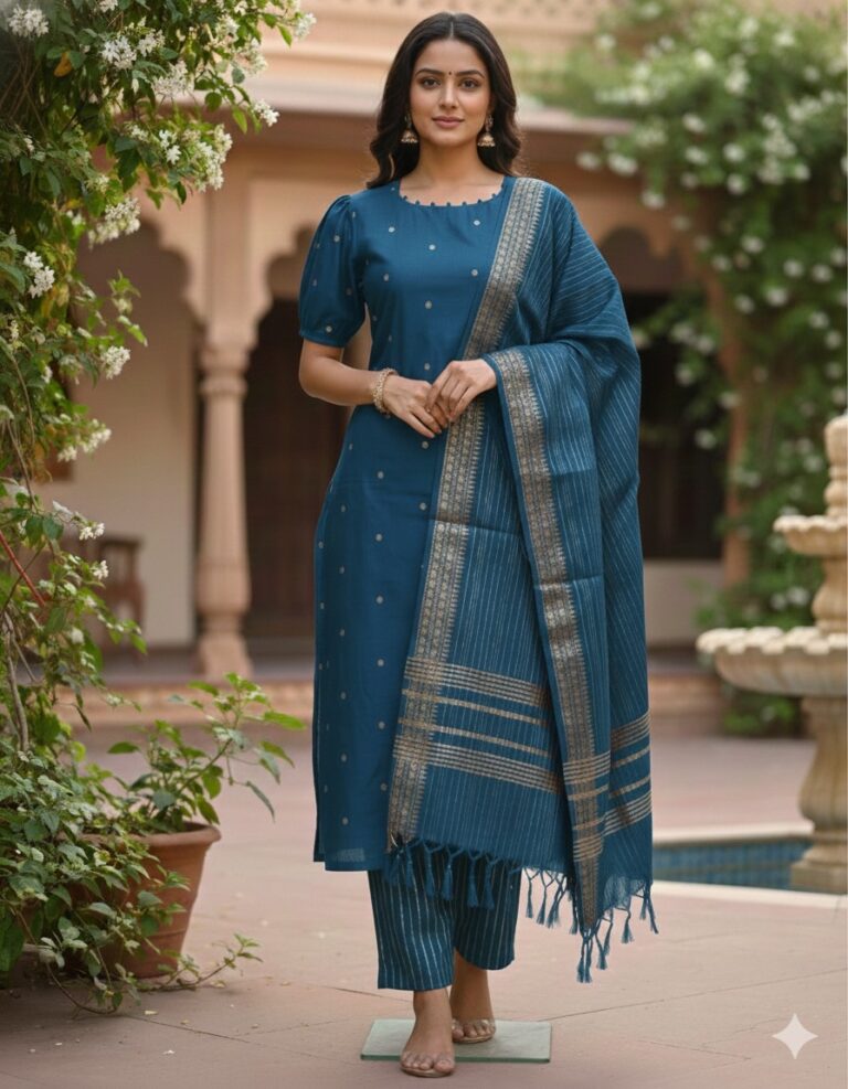 ✨ Premium Handloom Cotton Salwar Set with Gold Zari Weaving ✨. 🌟 Product Details