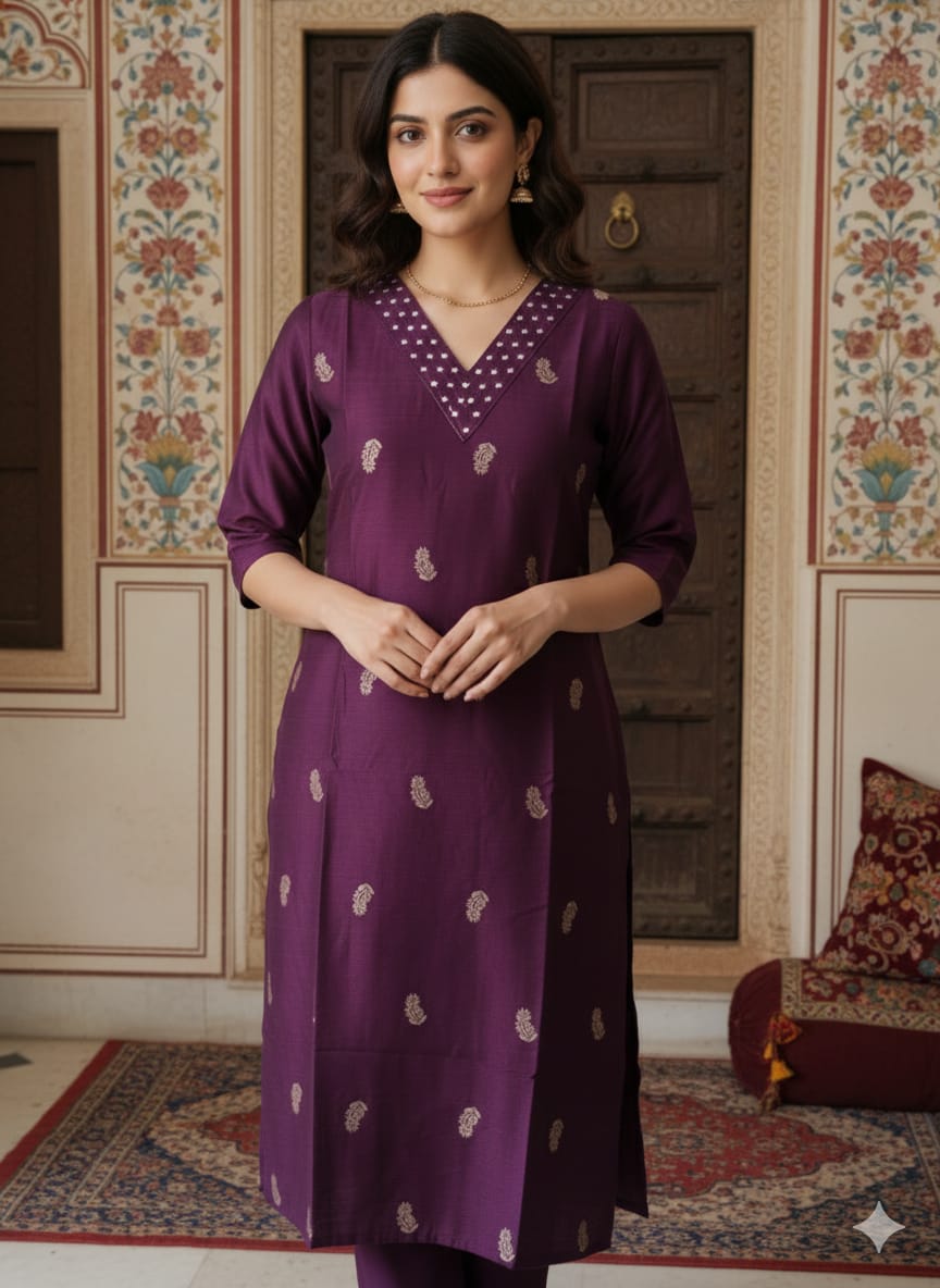 👗 Pattern: Straight cut kurti with linning