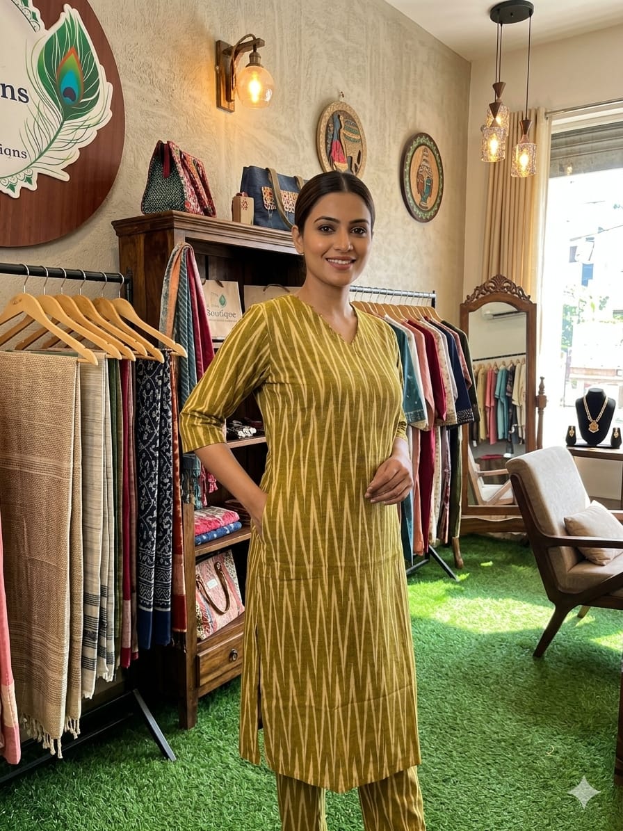 • 🧵 Fabric: Ikkat Cotton (soft & breathable)