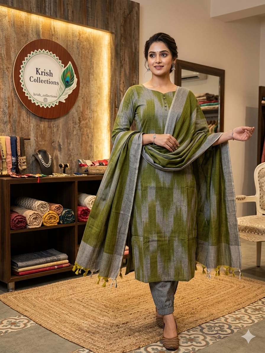🛍️ Grab this elegant and comfortable Ikkat cotton set perfect for daily wear, office wear & casual outings!