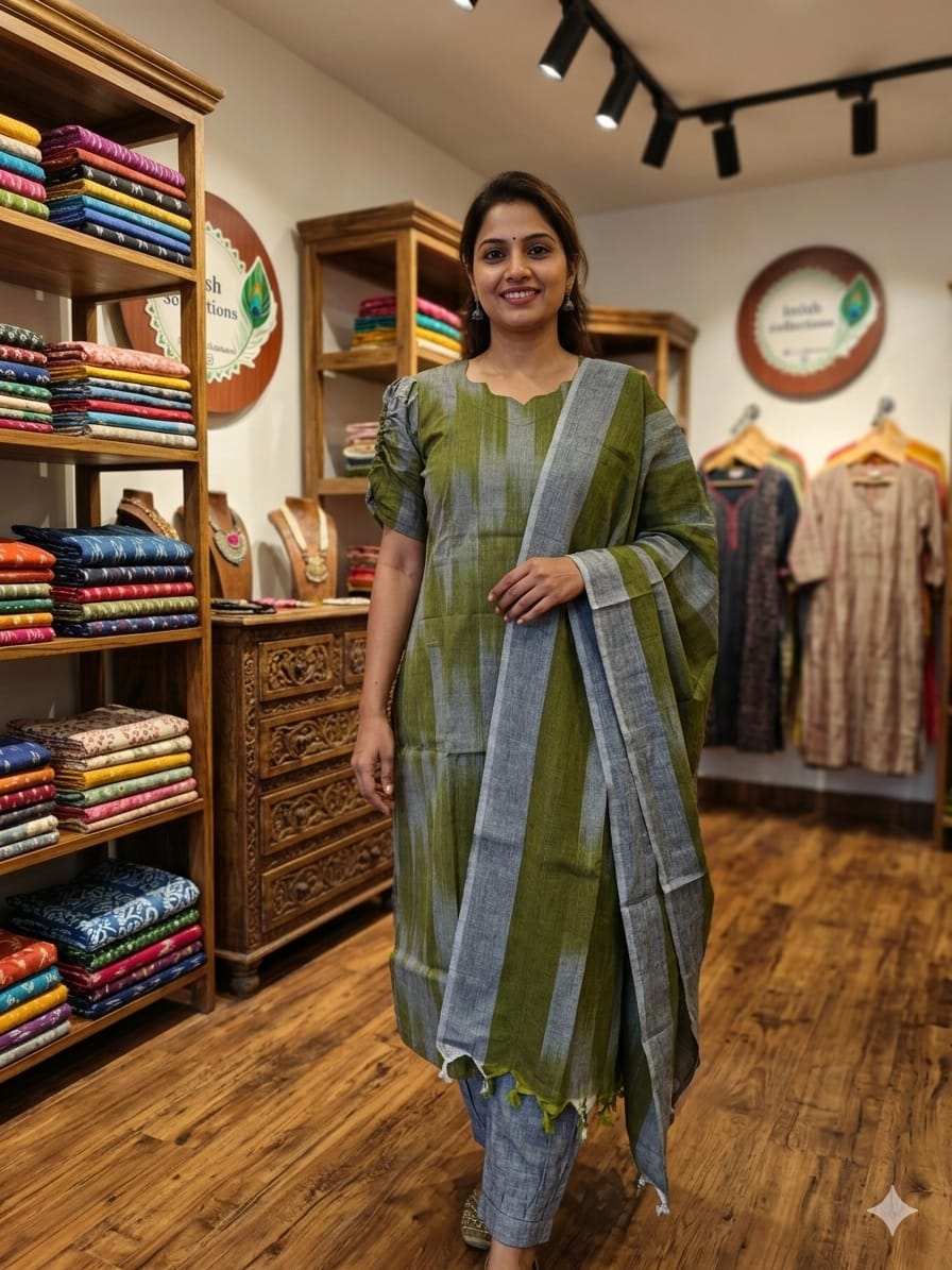 🌿 Fabric: Premium Ikkat Cotton