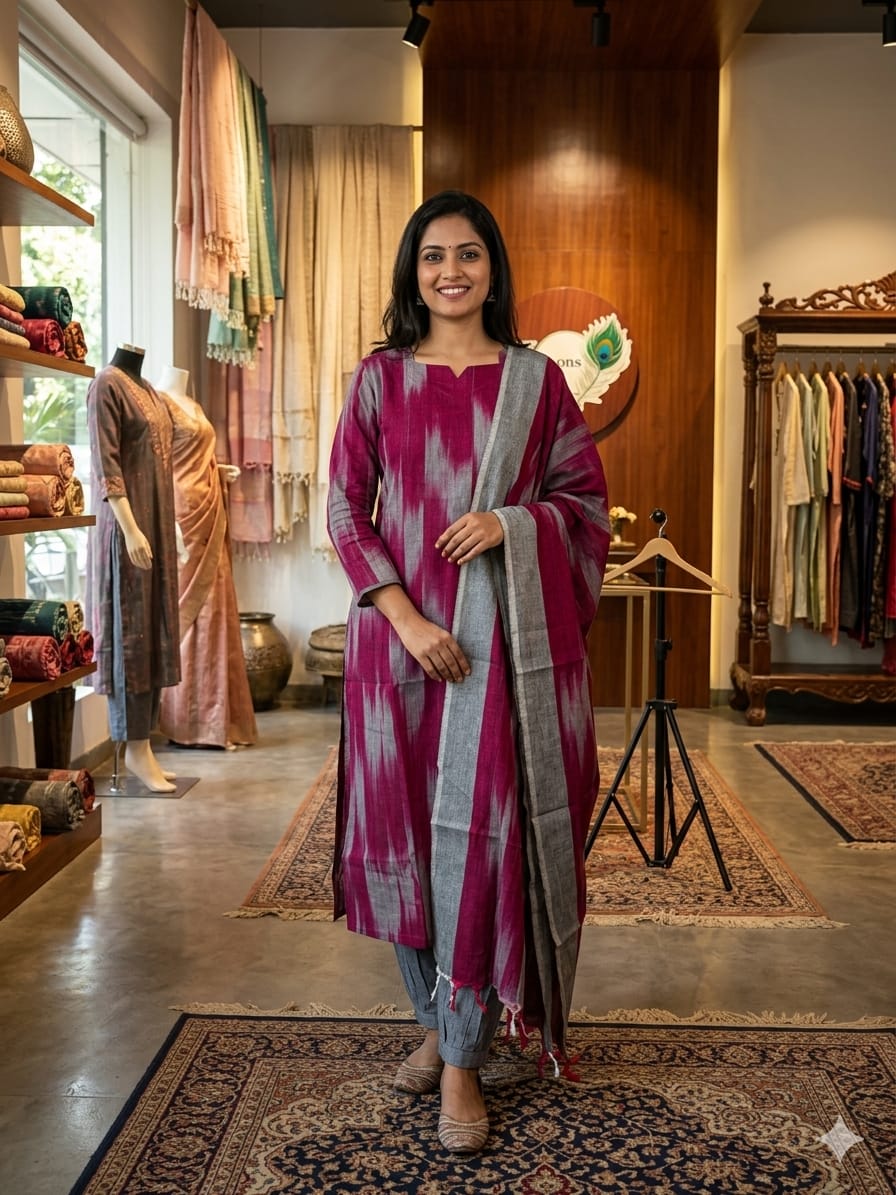 🛍️ Grab this elegant and comfortable Ikkat cotton set perfect for daily wear, office wear & casual outings!