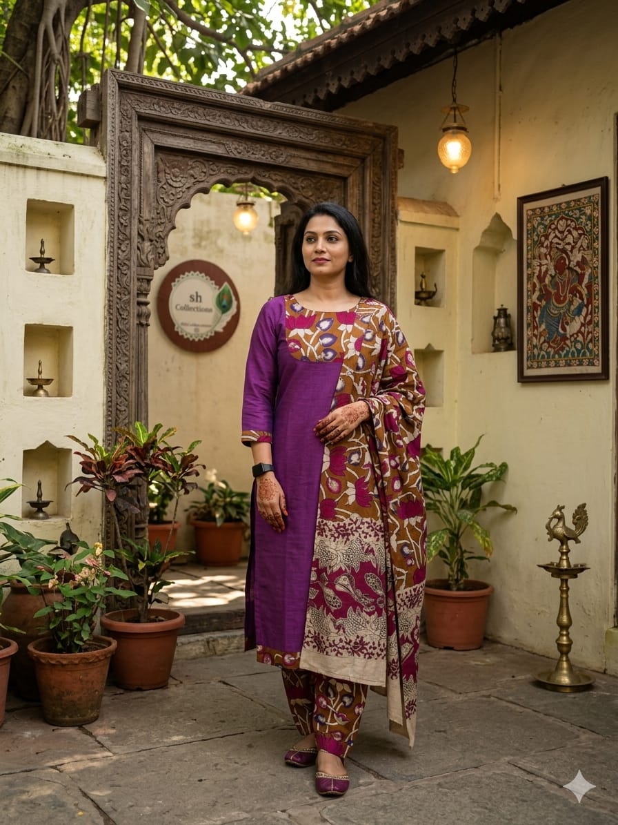This Kalamkari garment is completely handcrafted, making each piece unique 🌿 Slight color variations, light paint marks, or minor misprints may occur due to the hand-painting process. These are natural characteristics of authentic craftsmanship and not defects.