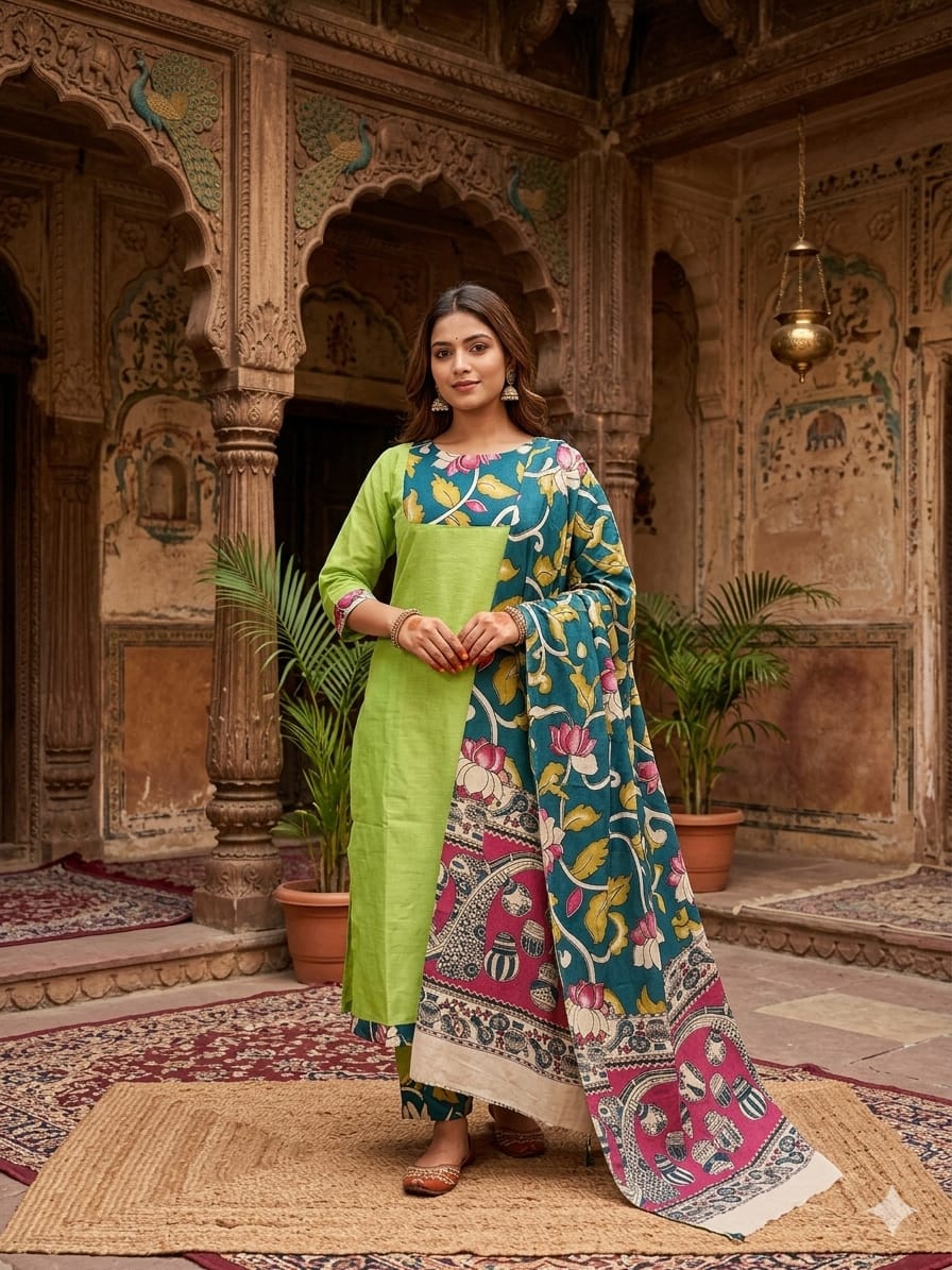 This Kalamkari garment is completely handcrafted, making each piece unique 🌿 Slight color variations, light paint marks, or minor misprints may occur due to the hand-painting process. These are natural characteristics of authentic craftsmanship and not defects.