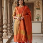Crafted from premium Kanchi Cotton, renowned for its smooth texture, breathable comfort, and durable quality. The fabric carries a subtle natural sheen that enhances its rich, traditional charm.