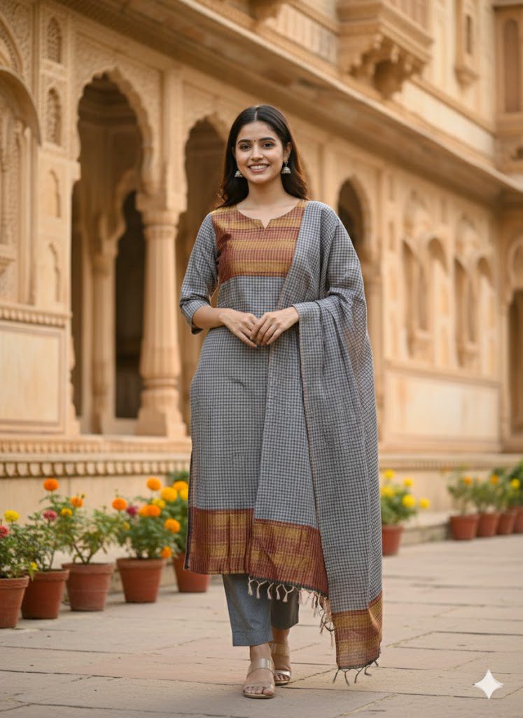 KANCHI COTTON KURTI WITH DUPPATTA-KC32
