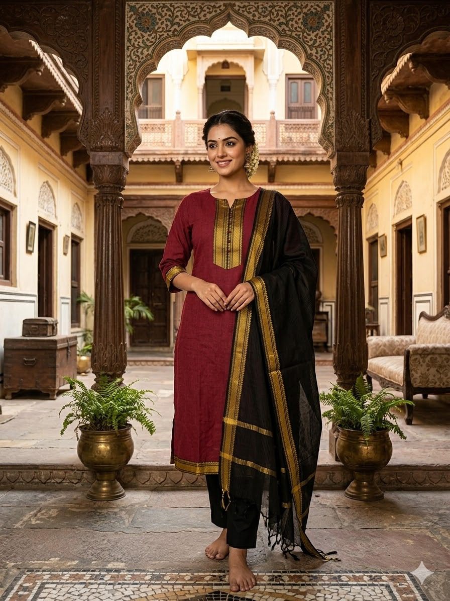 🌸 Premium Mangalagiri Cotton Kurti Set 🌸
