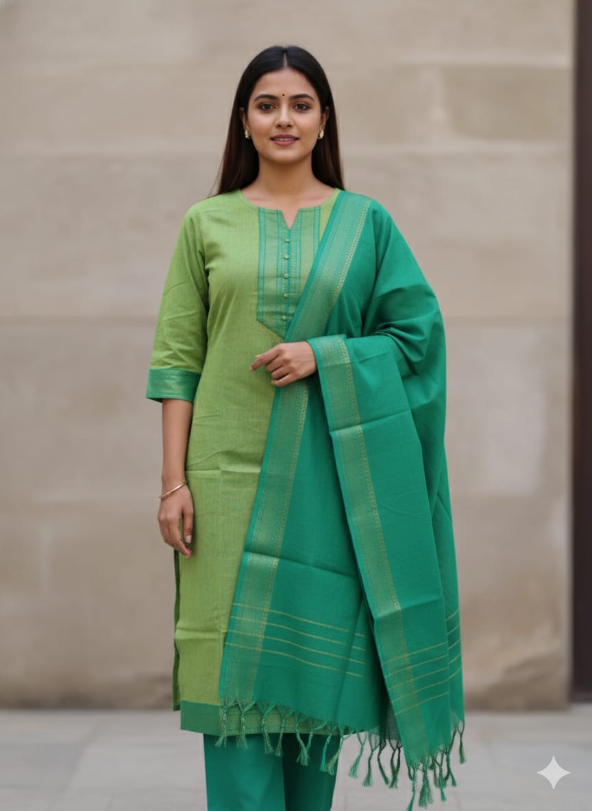 Design Highlight: Traditional cotton dupatta with contrast temple border and elegant tassels