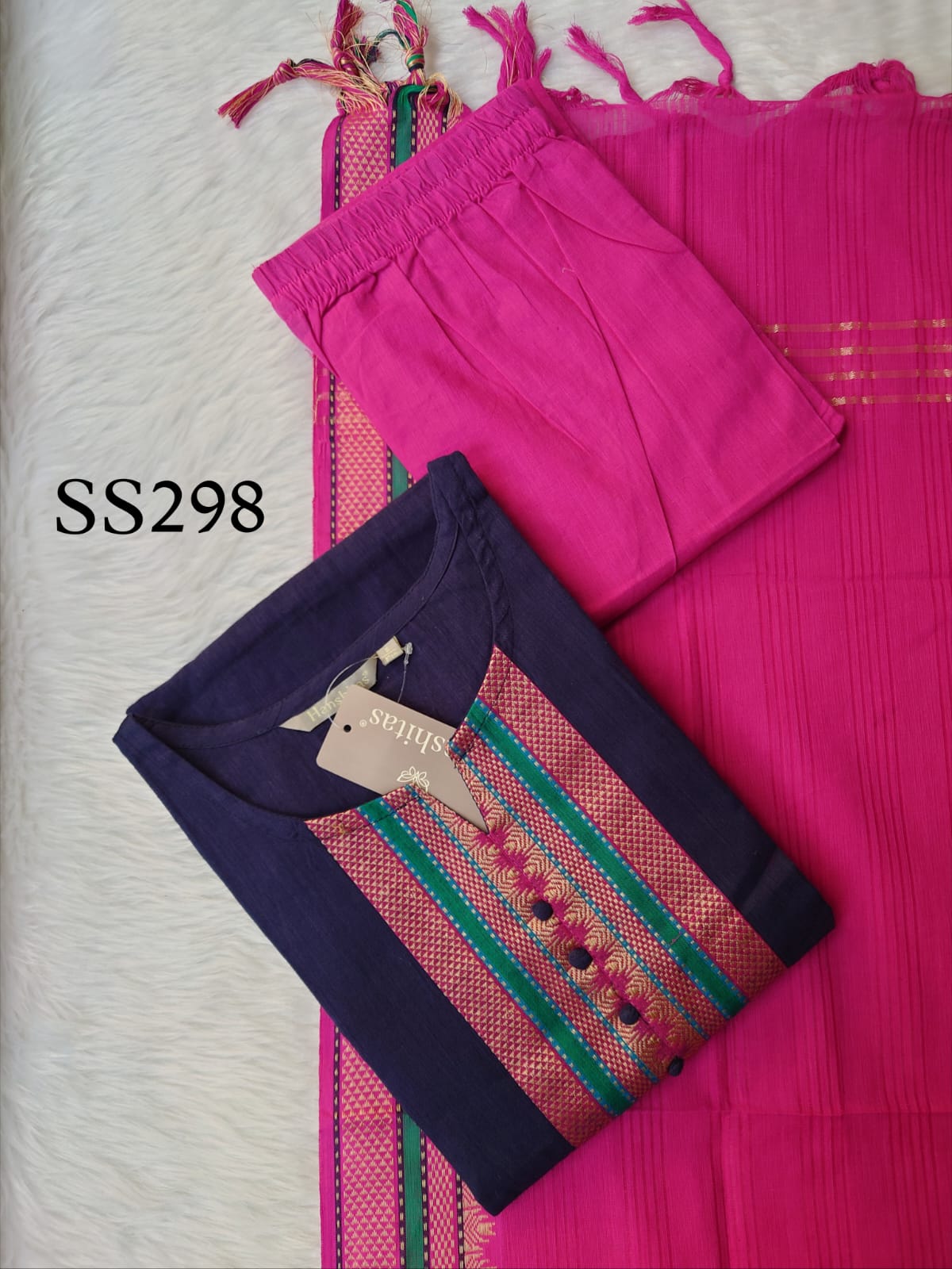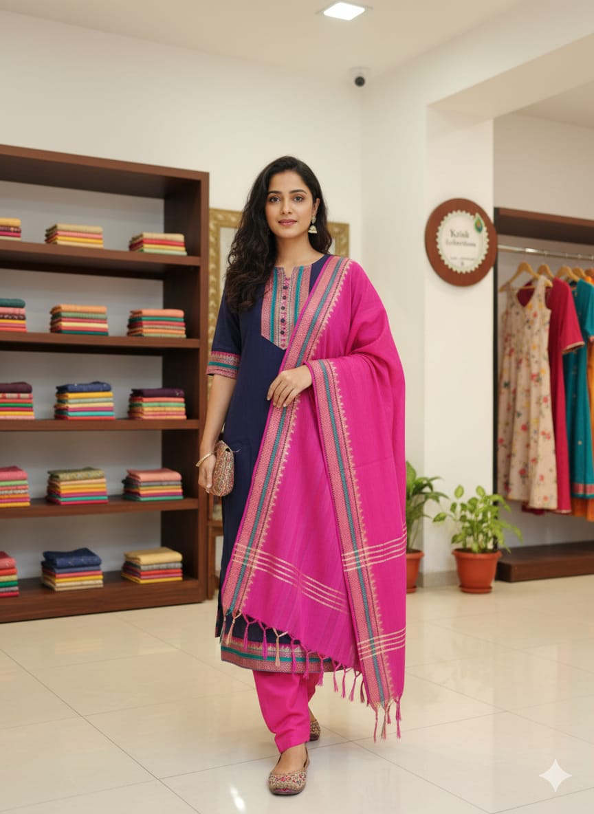Experience timeless elegance with our handcrafted Temple Border Mangalagiri Cotton Salwar Set, woven from pure fine cotton for unmatched comfort and sophistication.