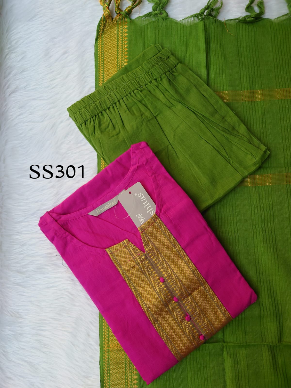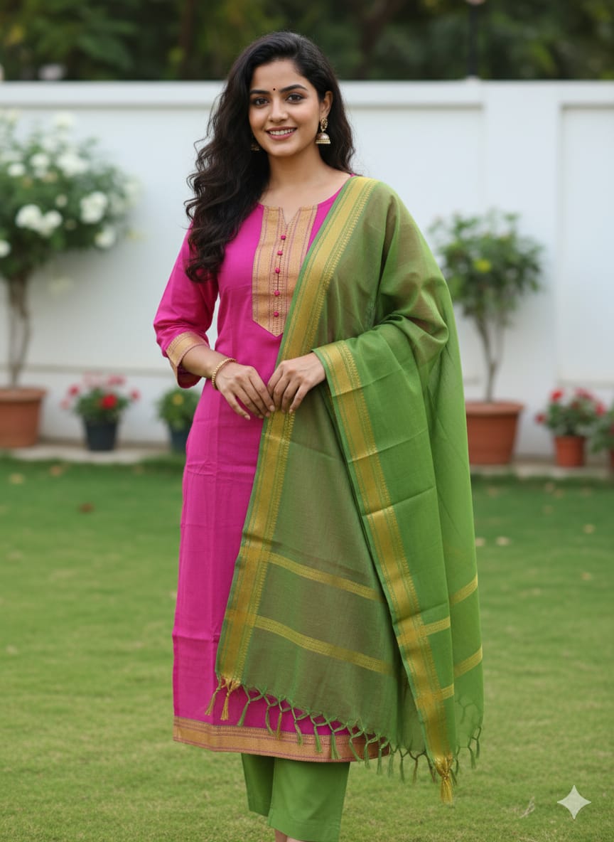 Experience timeless elegance with our handcrafted Temple Border Mangalagiri Cotton Salwar Set, woven from pure fine cotton for unmatched comfort and sophistication.