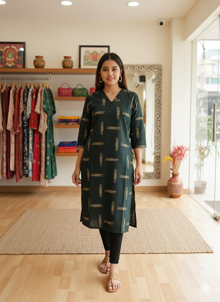 Pattern: Straight Cut Kurti With pocket