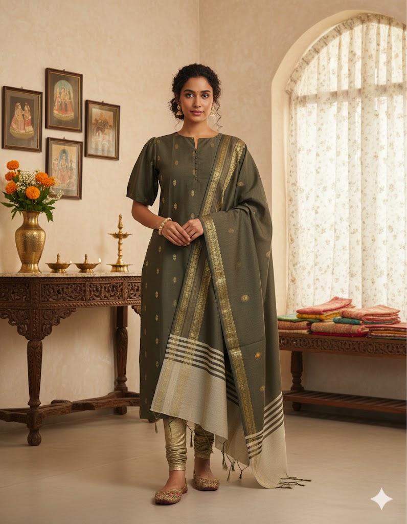 RAW SILK KURTI DUPPATTA -BA35