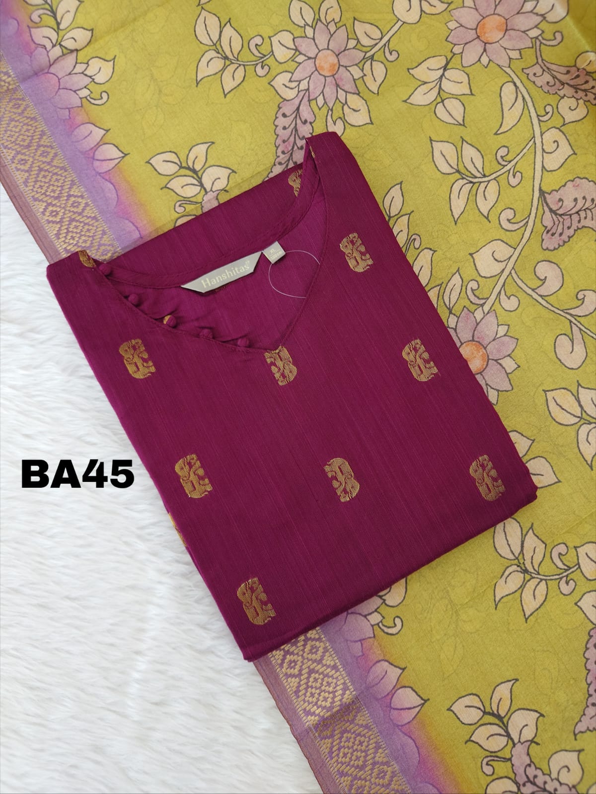 Premium quality raw silk Kurti with Kalamkari Dupatta