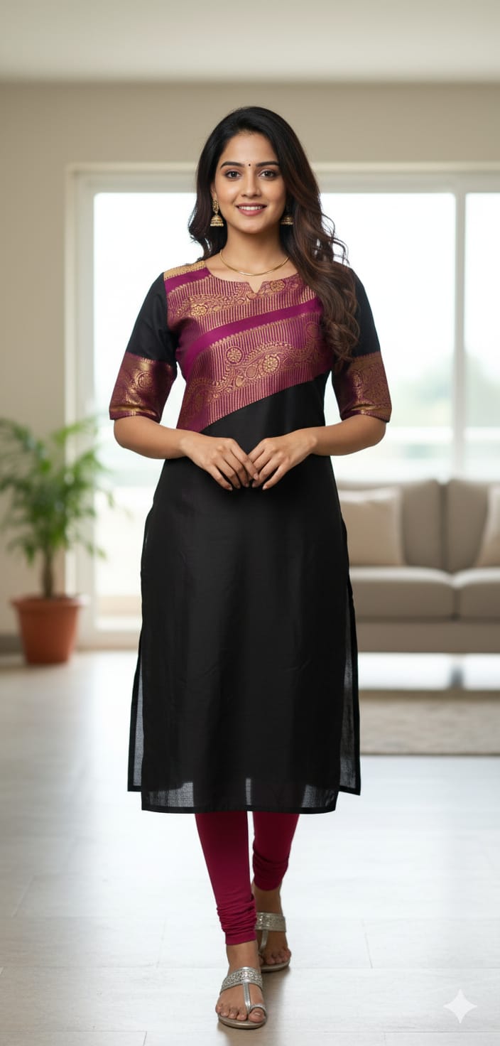 Step into the festive season with grace in our RAW SILK Kurti with Banarasi Brocade Border – a timeless blend of tradition & elegance!