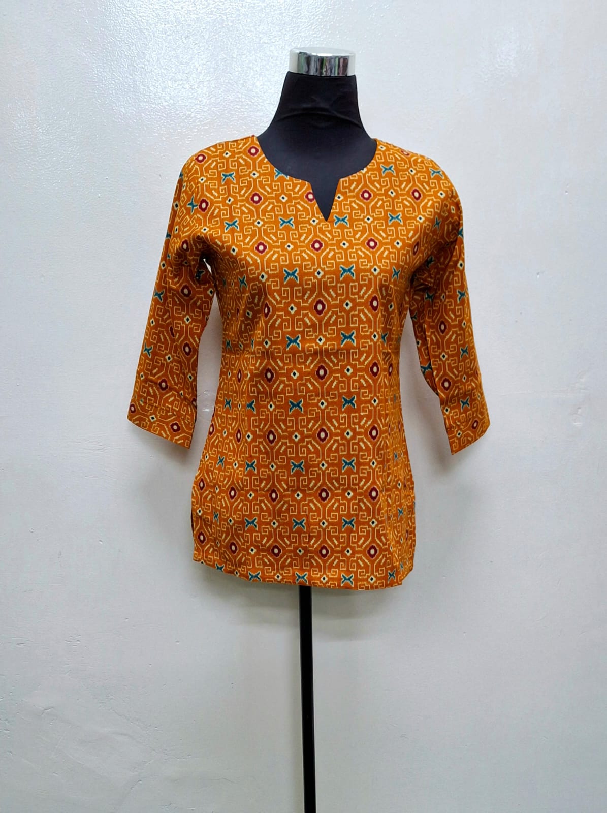 HEAVY FLEX COTTON FABRICSHORT KURTI WITH 3/4TH SLEEVES