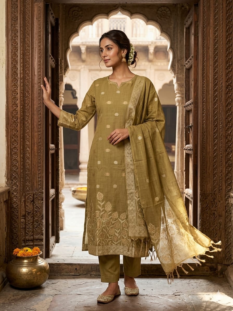 Elegant Jamdhani Silk Cotton Suit Set ✨