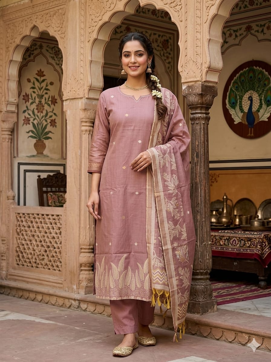 Elegant Jamdhani Silk Cotton Suit Set ✨