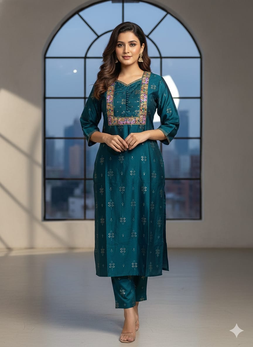 PREMIUM SILK STRAIGHT CUT KURTI SET ✨
